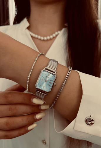 ♤خلق یک استایل بی رقیب اسکاتی scottie برند شرکتی گریدتری ای پلاس شیشه سافایر قفل کلیپسی موتورشرکتی بند استیل الماسی ضد حساسیت