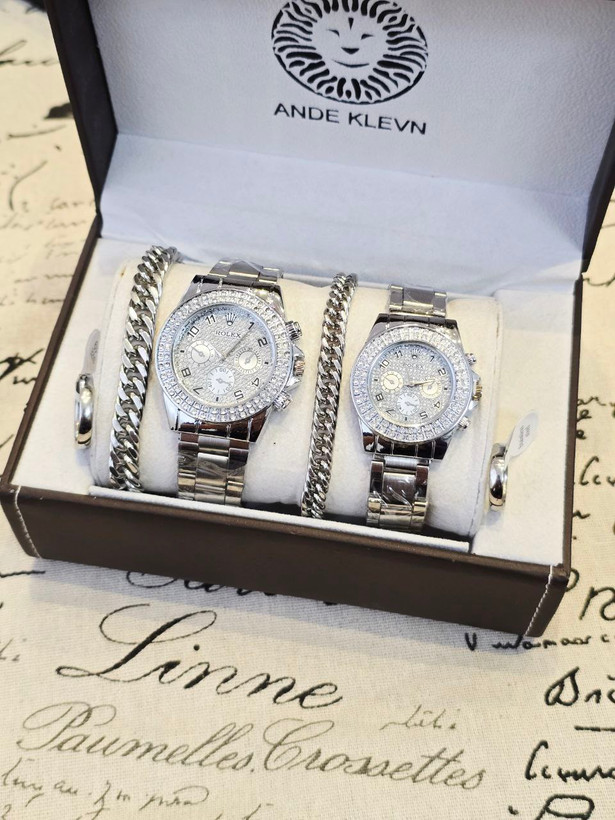 رولکس بهمراه دو عدد دستبند کارتیر استیل و دو تا انگشتر(سایز 6 تا 10) به همراه جعبه کادویی