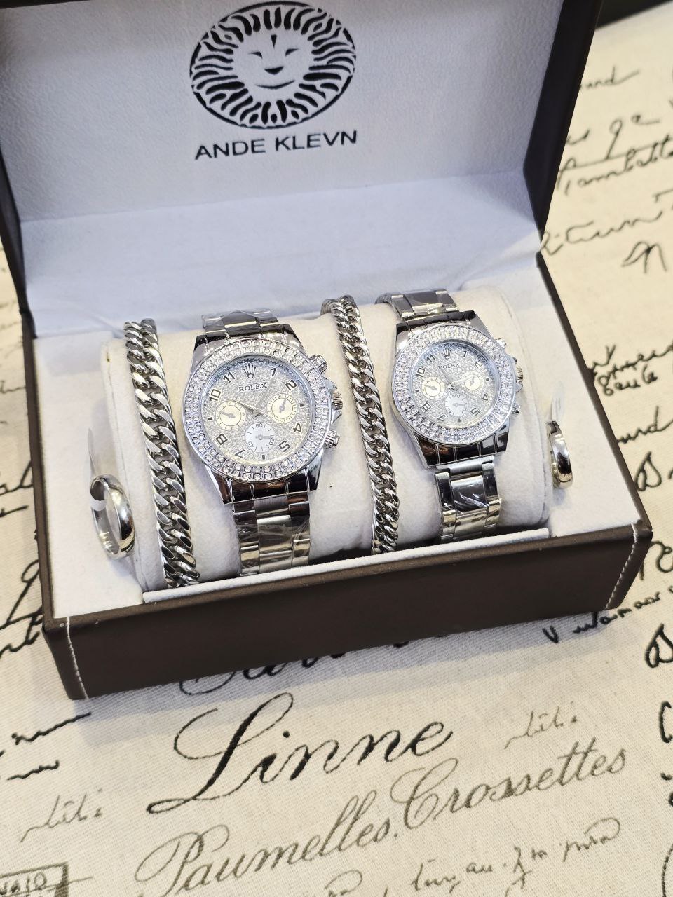 رولکس بهمراه دو عدد دستبند کارتیر استیل و دو تا انگشتر(سایز 6 تا 10) به همراه جعبه کادویی