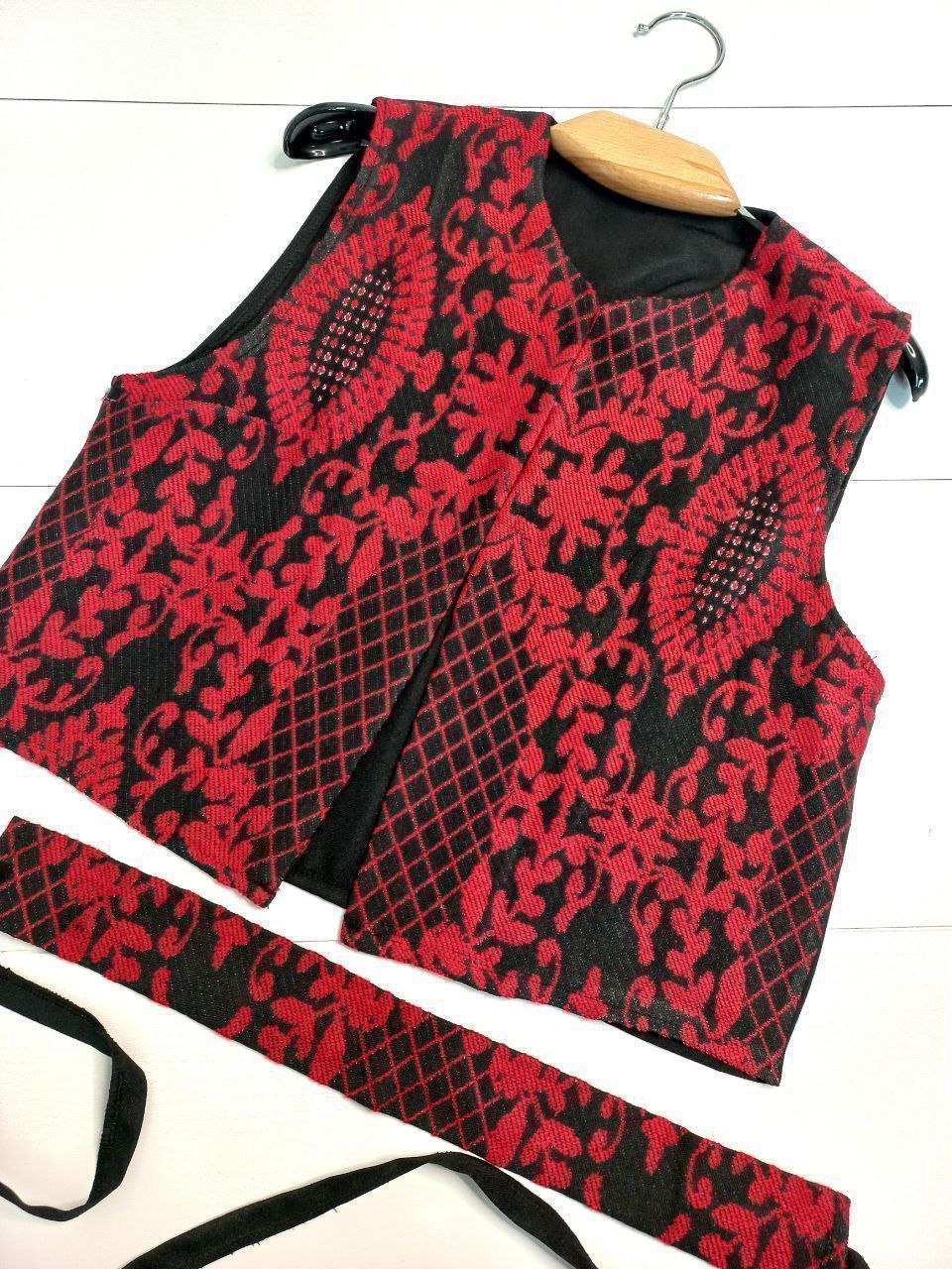 مشخصات محصول :🌹قد کار حدود ۱۲۵ سانت 🌹دورسینه پیراهن حدود ۱۰۶ سانت 🌹قد آستین حدود ۵۲ سانت 🌹قد جلیقه حدود ۴۰ سانت 🌹دورسینه حدود ۹۶ سانت