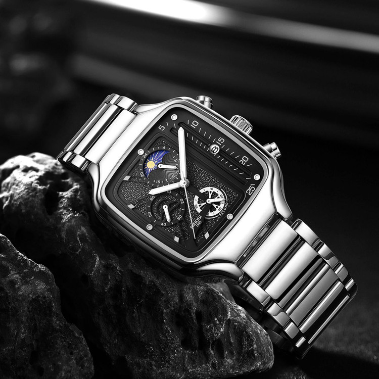 مشخصات محصول :قطر 42 میلی متر رنگ ثابت دارای مون فیس قاب استیل بند استیل قفل پروانه ای شیشه ضدخش روز شمار دارد ضدآب 3ATM با جعبه مارکدار