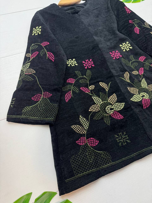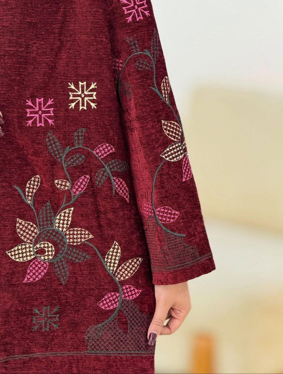 مشخصات محصول :: 💞شناسه : #98878 💞نام : مانتو مجلسی رازقی 💞جنس : مخمل درجه یک گلدوزی شده 💞رنگ بندی : زرشکی, سرمه ای, مشکی 💞سایز ها : فری38_46🔹🎁 🌹قد کار حدود ۷۵ سانت 🌹دور سینه حدود ۱۰۴ سانت 🌹قد آستین حدود ۵۰ سانت