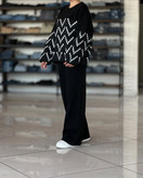 مشخصات محصول :: 🌹قد بلوز 70 🌹قد شلوار 108 🌹دورسینه 118 🌹قدآستین از دوخت 52 🌹دور ران 56 اندازه ها بدون کشسانی گرفته شده 1الی 2 سانت خطای اندازه گیری در نظر گرفته شود 🧵جنس : نخ بافت آکرولیک 🖌 رنگ بندی : مشکی - نسکافه ای - ذغالی - ⚜️ سایز ها : فری 38/48 -