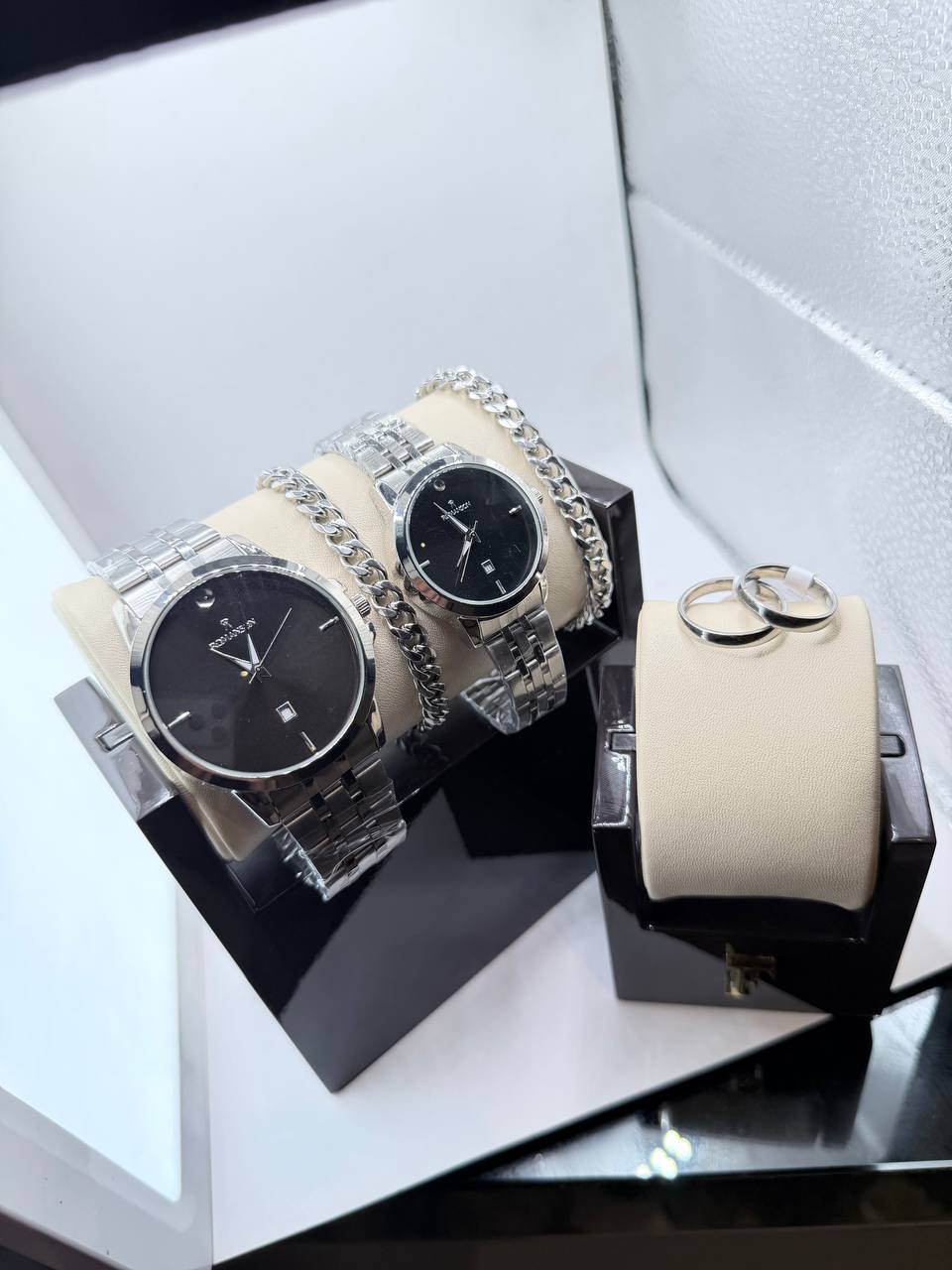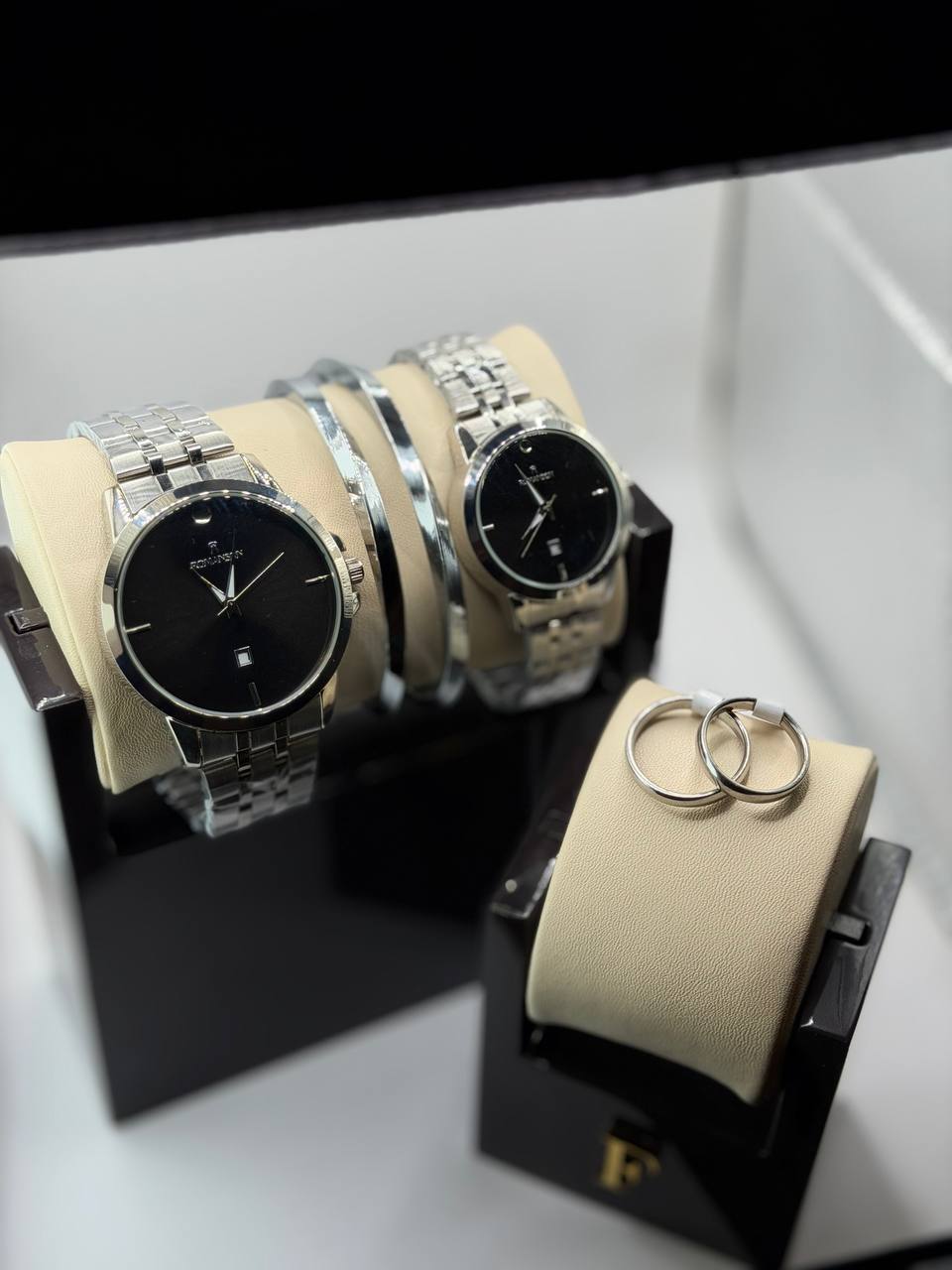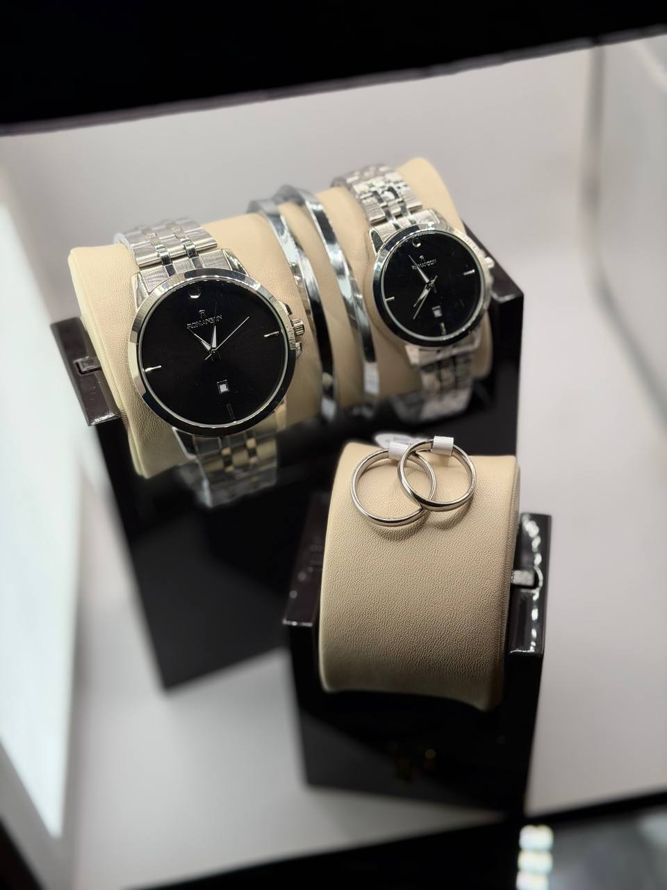 ست ساعت زنانه و مردانه برند رومانسون romanson به همراه دستبند و حلقه