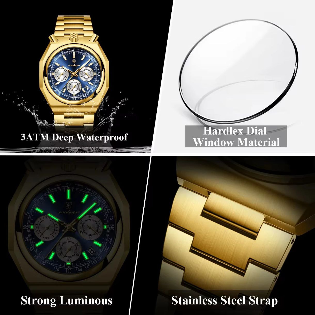 ساعت مردانه poedagar مدل897 ⭐️ ✅کرنو سه موتوره فعال ✅رنگ ثابت ✅تقویم دار ✅طرح خلبانی