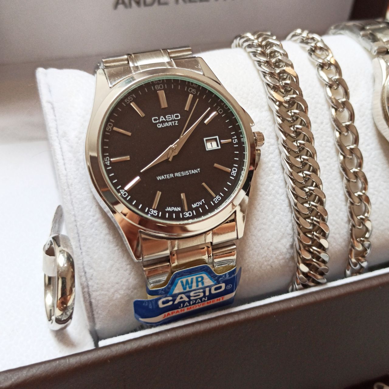 ست ساعت زنانه و مردانه برند کاسیو و دو عدد دستبند کارتیر استیل و دو تا انگشتر