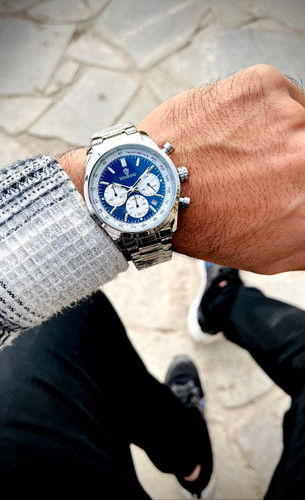 ⌚️ساعت بین باند مدلی نو مناسب آقایان مقاوم دربرابر آب برندشرکتی اوریجینال کرنوگراف کارت گارانتی دارای روز شمار بند استیل فولاد شیشه سافایر شب نما قفل دو پروانه موتور کوارتز