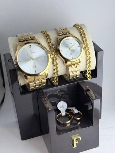 ست ساعت زنانه و مردانه به همراه دستبند و حلقه خاص رنگ طلایی